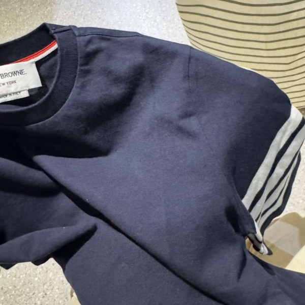 (W) Thom Browne Jersey 4-Bar Short Sleeve T-Shirt Navy
